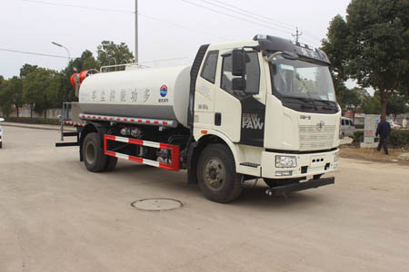 國六解放12方噴霧抑塵車,噴霧抑塵車標配前沖后灑,帶側噴,罐體后帶工作平臺,平臺上安裝綠化灑水炮(射程達30米)和農藥噴灑專用炮。灑水炮和農藥炮均可360度全方位旋轉,可連續調成直沖狀、霧狀、大雨、小雨、毛雨。噴藥炮霧化效果好,可遠程噴霧,射程達40-100米。