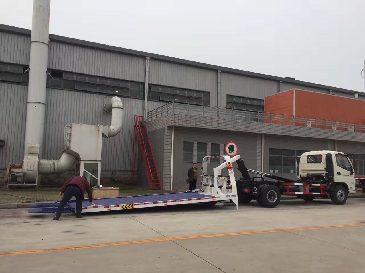 7.平板背載型一拖二清障車還可設(shè)計(jì)制造在駕駛室與平板之間加裝起重吊機(jī)或液壓升降平臺(tái),增加車輛多功能性。也可以設(shè)計(jì)制造通過(guò)液壓機(jī)構(gòu)使平板全落地,方便超低底盤車輛拖運(yùn)。還可根據(jù)特殊用戶要求制作伸縮平板,特種情形下平板可以向后延長(zhǎng)70CM,以應(yīng)對(duì)超長(zhǎng)車輛的清障運(yùn)輸工作。