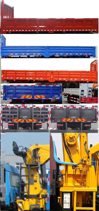 選裝駕駛室前圍面板,進氣格柵,前保險杠及前部燈具。選裝無爬梯結構時貨廂長(mm)為5800。吊機型號/吊機重量(kg)/最大起升載荷(kg)/整備質量(kg)/載質量(kg)/分別為: 1,(SQ8SA3)/3000/8000/10090/5715;2,(SQ7SA3, SQ7SA2): 2070/7000/9160/6645。整車長/前懸/后懸/軸距(mm)對應關系為:9000/1250/2650/5100, 9000/1430/2470/5100。該車僅選用5100mm軸距。防護材料:Q235A碳鋼,連接方式:左右側面與箱體底面采用焊接連接, 后下防護與平板采用焊接連接,斷面尺寸(mm):110?0?,后部防護離地高度(mm):405。該車選用發動機型號: ISB170 40,ISB190 40,YC6J180-46對應的油耗值分別為(L/100km): 28.0,28.0,28.0。安裝帶有衛星定位功能的行駛記錄儀。 ABS型號為3631010-C2000,生產廠家為東風電子科技股份有限公司汽車制動系統公司。